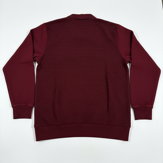 Alvin polo manches longues 100% Cotton Bordeaux Jacquard géométrique en relief